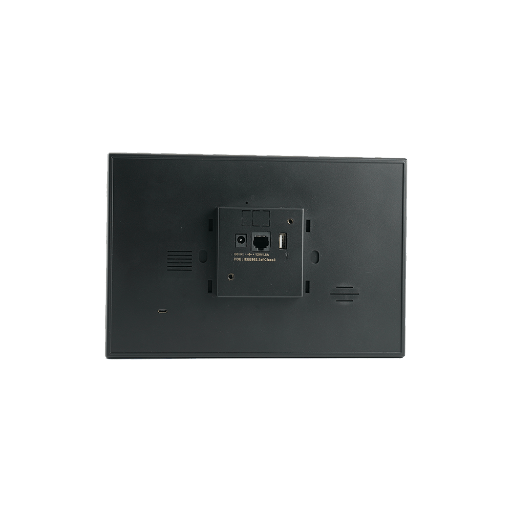 Q8919 is a 10.1-inch Android tablet designed for building automation, access control, and professional signage. Its larger display provides ample space for interactive dashboards, schedules, and detailed interfaces, making it an excellent choice for modern workplaces and smart facilities. Standard features include PoE for one-cable installation, NFC capability for secure authentication, and connectivity through RS232/RS485 and GPIO for seamless system integration.