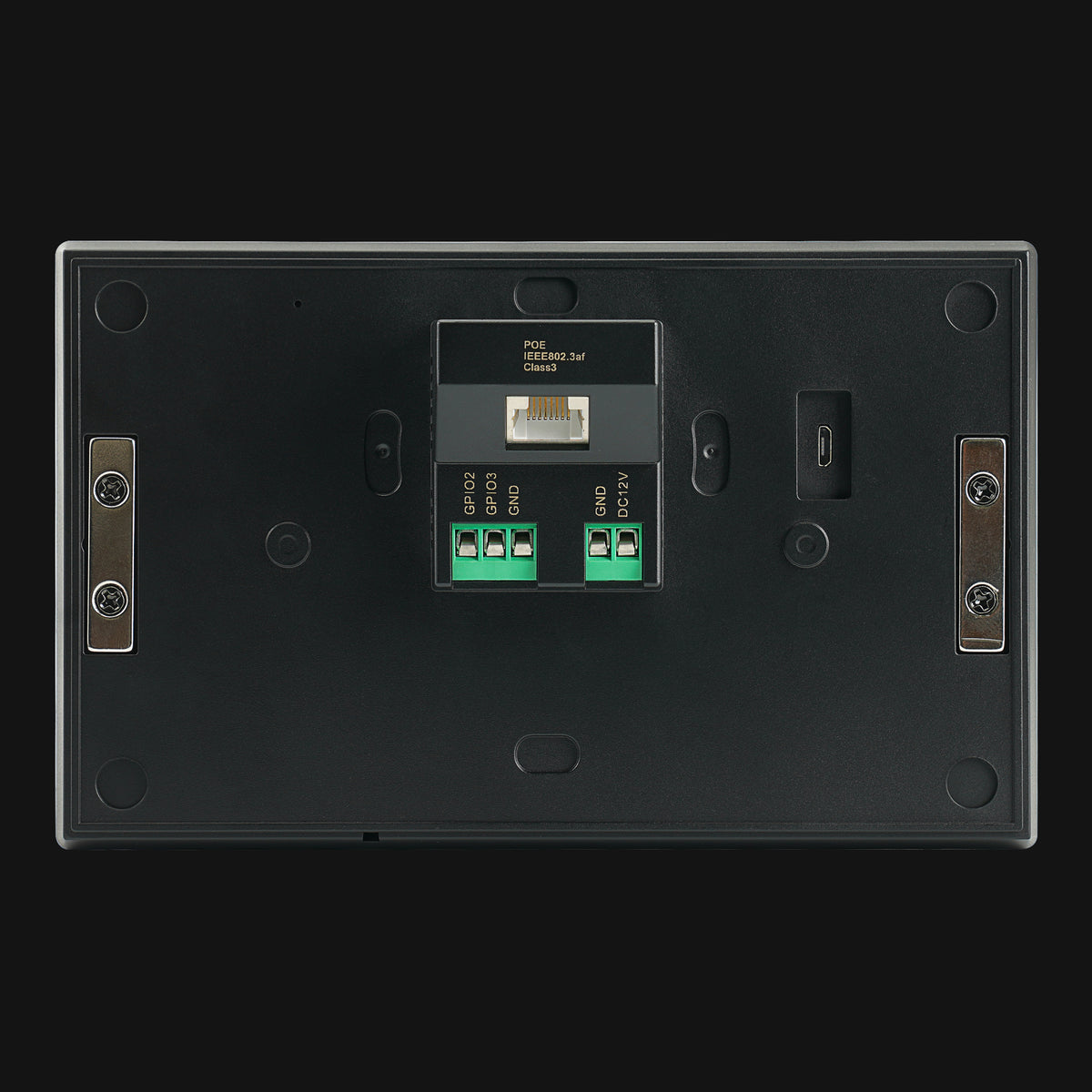 A key advantage of the Q7S is its support for Power over Ethernet (PoE), supplying both power and data through a single cable for simpler installation. This makes deployment more reliable and flexible, whether the tablet is mounted on a wall, integrated into a panel, or used as part of a building-wide control system. The device is also equipped with integration-ready interfaces such as RS232, RS485, and GPIO, allowing it to communicate with door controllers, sensors, and other automation hardware.