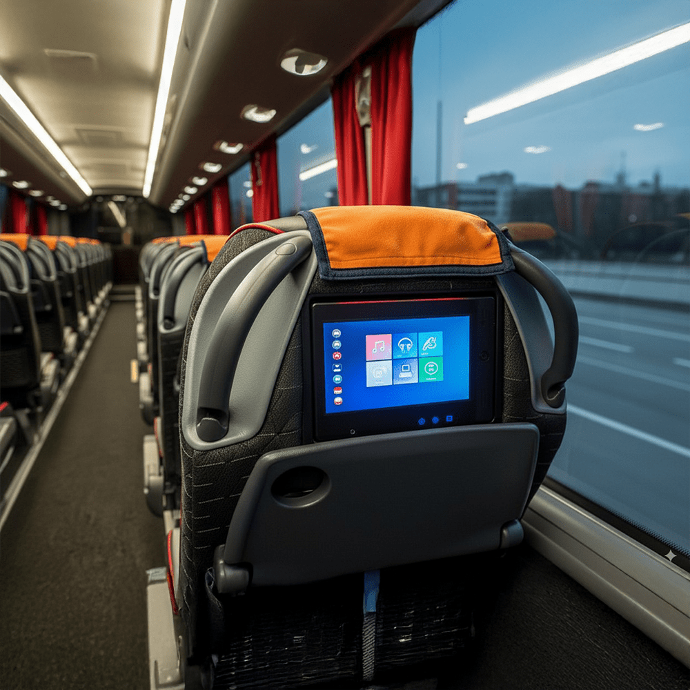 Q8920 is a 9-inch Android tablet designed for demanding environments such as vehicles, logistics hubs, and industrial facilities. Its durable construction allows seamless integration into bus seat backs for in-transit entertainment or installation beside truck cab seats to provide drivers with navigation, dispatch updates, and operational data.