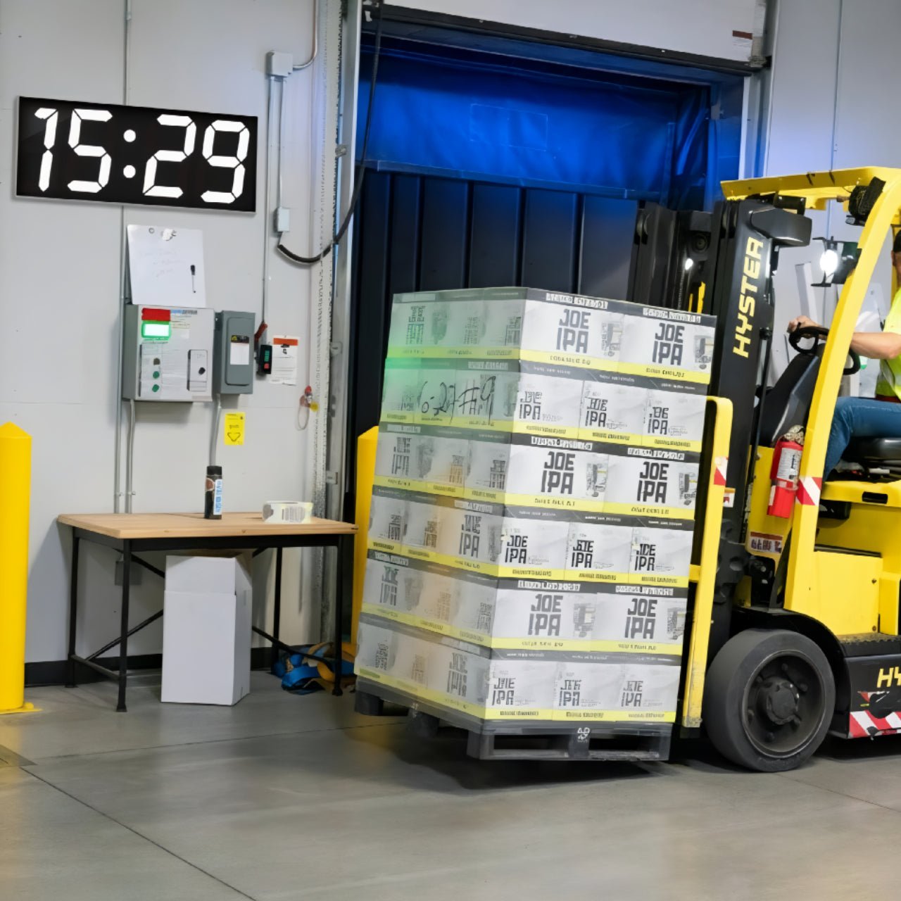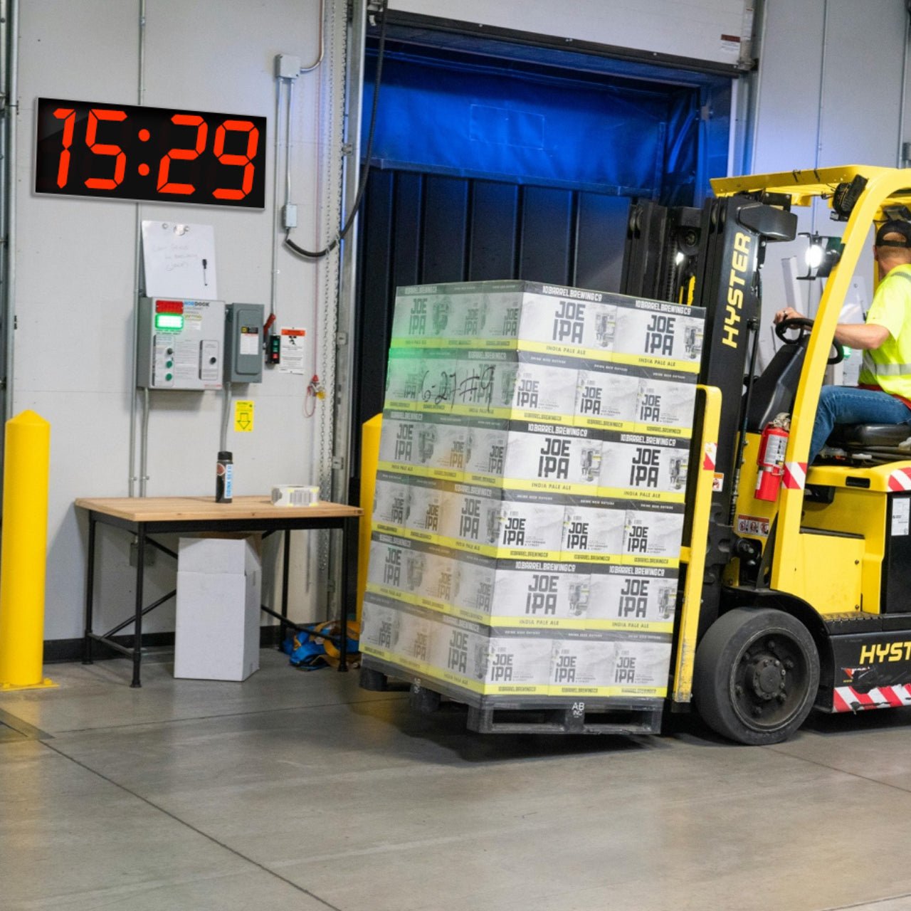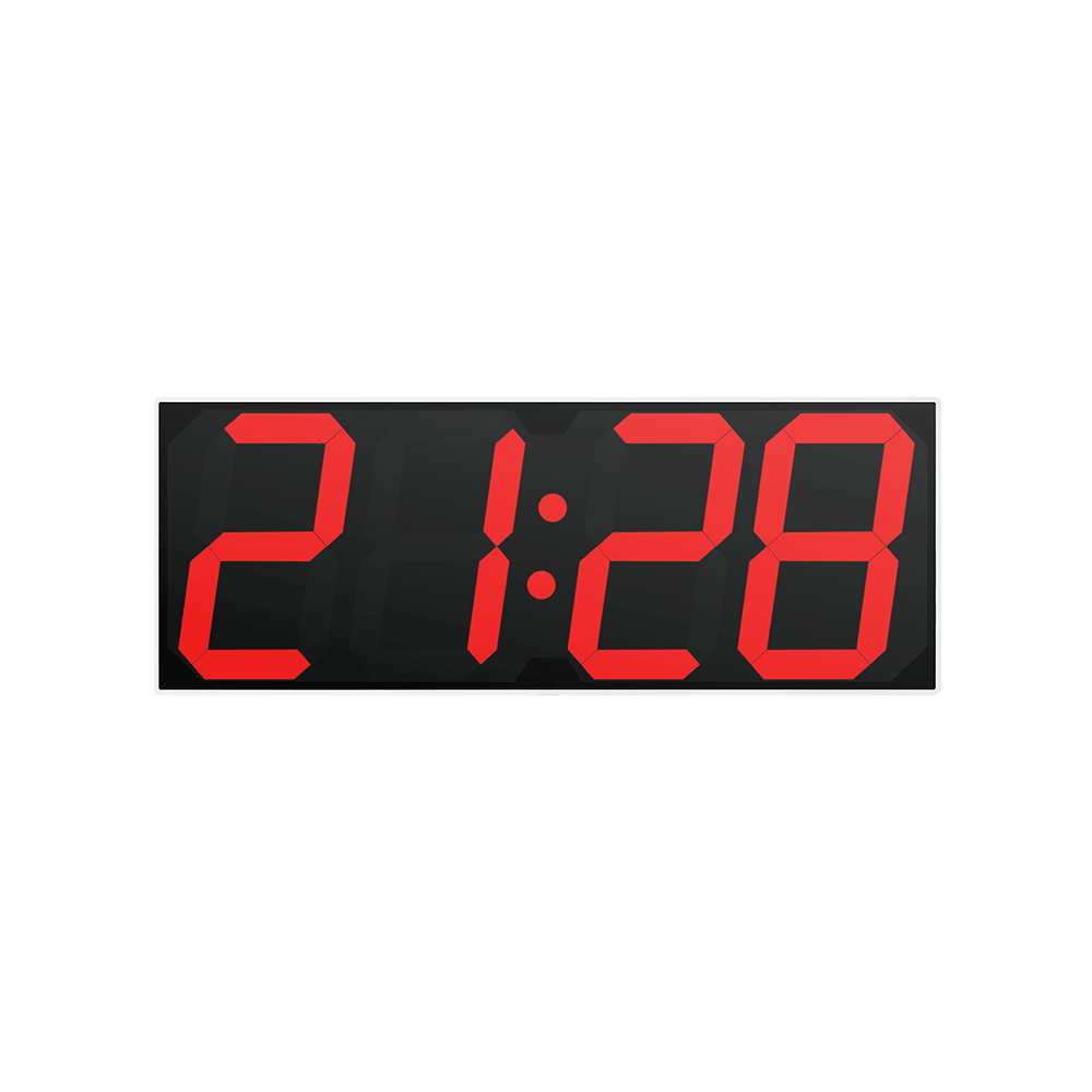 It supports 12 or 24 hour display, countdown clock and stopwatch modes, and up to 30 alarms with relay output for scheduling, training, and production timing.